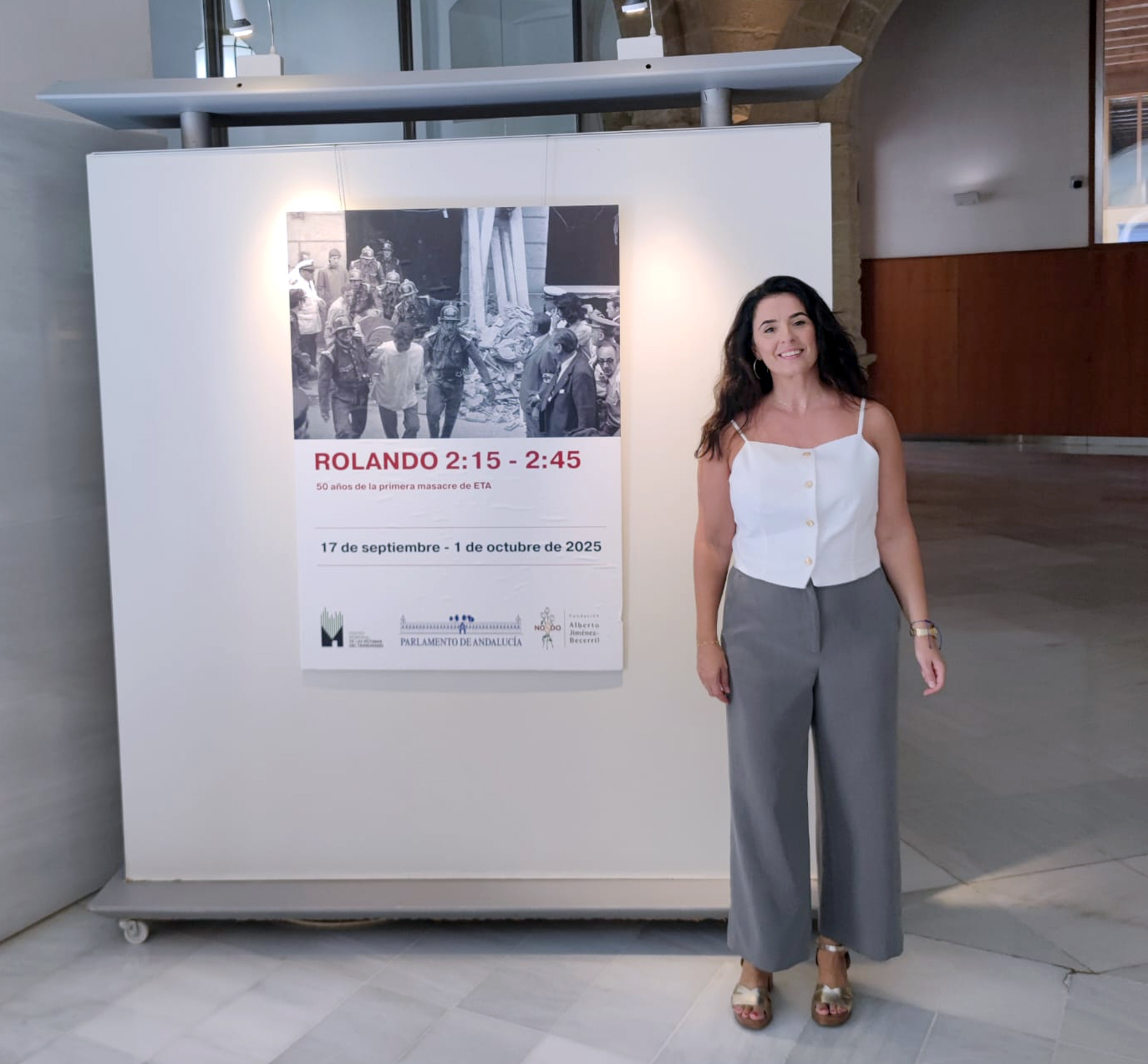 La gerente de la AAVT, Martina Vidal Gómez, nos representó este 17 de septiembre en la inauguración en el Parlamento Andaluz de la exposición sobre los 50 años del primer atentado masivo de ETA: el de la cafetería Rolando en Madrid, en un acto encabezado por el presidente de esa institución clave de la democracia andaluza, Jesús Aguirre.